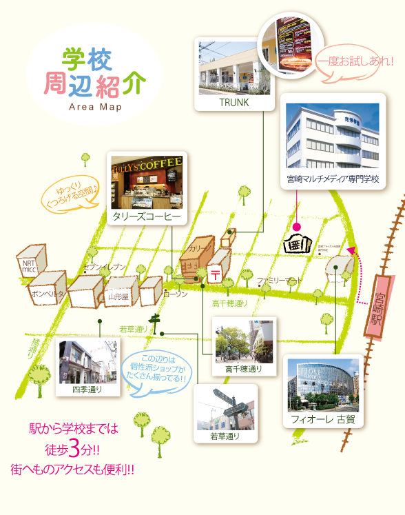 駅から学校までは徒歩3分!街へのアクセスも便利!