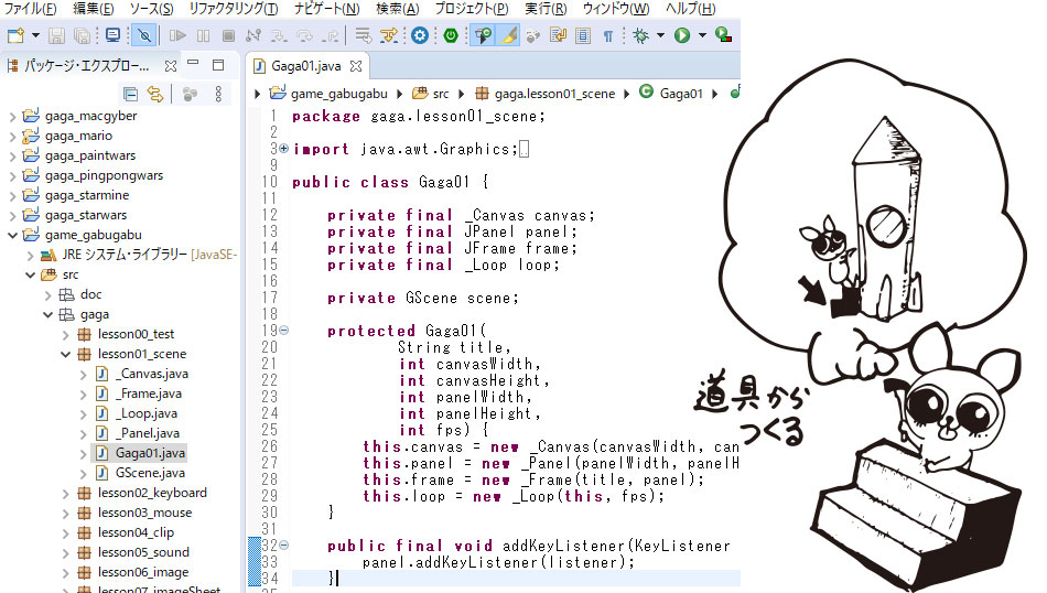 自社製ゲームエンジンといえば、FFシリーズの開発で使用された「クリスタルツールズ」やメタルギアソリッドの開発で使用された「フォックスエンジン」が有名ですが、流石にあそこまで高機能なエンジンは作れないので、機能はぐっと絞ることになります。 たとえば「画像を拡大・縮小・回転させる」とか「BGMや効果音を鳴らす」といった基本的な機能の提供ですね。