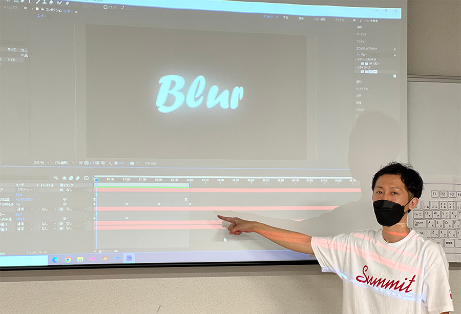 株式会社グッドエレファントの村岡先生に来校頂き、毎週しっかり勉強をしています。難しいAfterEffectの操作も少しづつ慣れて来ました。